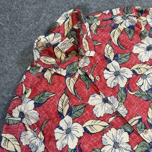 Faherty Shirt Mens Medium Red Floral Hawaiian Button Up Linen Rayon Blend Casual