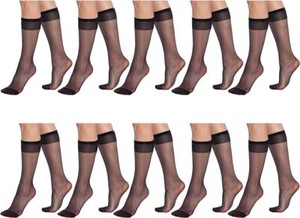 10 Pairs Sheer Knee High Socks for Women 15 Denier Stay up Band