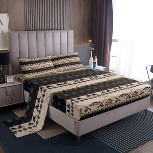 Rustic Western Southwestern Native American 4 Piece King Size Sheet Set in Be...