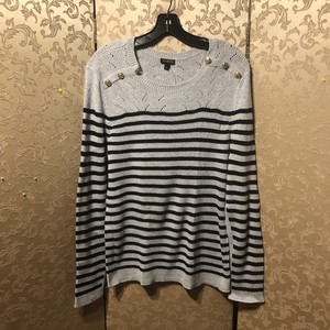Talbots NWT Gray Navy Blue Striped Crown Buttons Sweater Size XL
