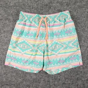Chubbies The En Fuegos Swim Trunks Mens Small Green Orange Aztec Print Mesh Pool