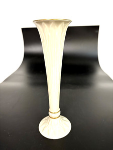 LENOX Tivoli Bud Vase Ivory Porcelain with 24k Gold Trim 9" Fluted Mint Cond.