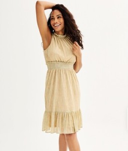 NWT Draper James Women Flare Dress Sz 2XL Color Gold Sleeveless Midi Neck Round