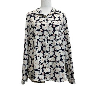 Skies Are Blue Stitch Fix White & Blue Floral Print Button Front Blouse sz M