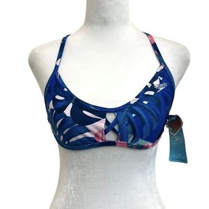 Speedo Endurance Blue Tropical Leaf Bikini Swim Top sz S Beach Strappy Front