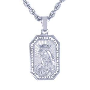 Men's Rapper Silver Tone Iced Virgin Mary Pendant 24" Rope Chain Necklace M51 S