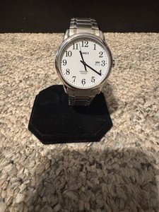 Timex TW2P81300 Men's Easy Reader Watch, Silver/White. New Battery. Stretch Band