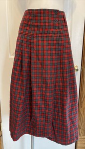 Vintage MONDI Red Plaid Pleated Wrap Skirt 1980s Midi Size 36 Dark Academia