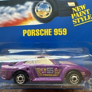 1990 Hot Wheels Porsche 959 Purple #179 New Paint Style BW Wheels Blue Card