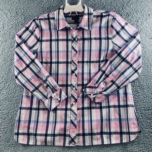 Talbots Shirt Women's Long Sleeve Button Up 100% Cotton Plaid Pink Blue Petite L