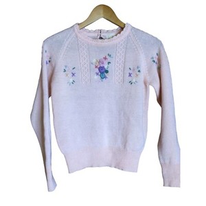 Vintage Womens Embroidered Floral Knit Sweater Long Sleeve Grandma Size M Pastel