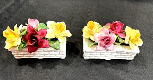 Vintage Crown Staffordshire Fine Bone China Flowers Figurines Two Flower Pots