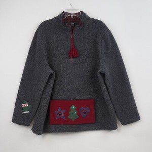 Croft and Barrow Sport Grey Fleece 1/4 Zip Sweater 1X Appliques Kangaroo Pocket