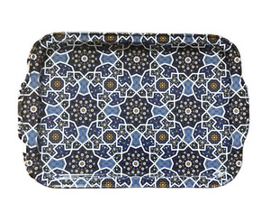 Colorful Metal Tray, 12.25" x 8.5" Decorative Coffee / Tea Serving Tray, Turkish