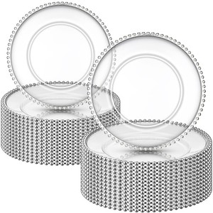 13 Inch Silver Charger Plates Set of 12, Clear Plastic Dinner Charger Plates ...