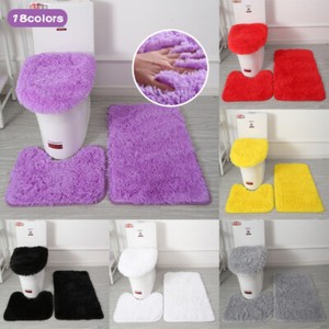 3Pcs Of Set Soft Plush Bathroom Rug Contour Mat Toilet Lid Cover Bathmats Yellow
