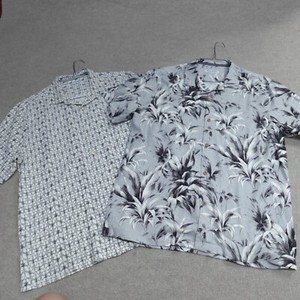 Tommy Bahama Shirt Large Gray Loop Collar Floral Silk Geometric Lot of 2
