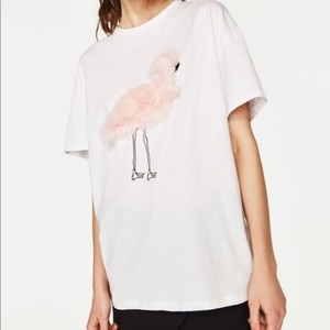 Zara Trafaluc Sz Small T-Shirt Short Sleeve Fuzzy Flamingo Beach Novelty Print