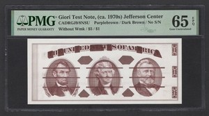 Giori Test Note,(ca. 1970s) Jefferson Center "Without Wmk" Uncirculated Grade 65