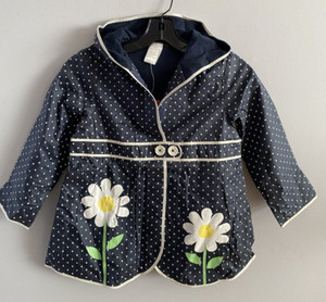 Gymboree Wish You Were Here Polka Dot Raincoat Navy White Hood Lined Size 5 NWT