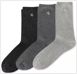NWT LAUREN RALPH LAUREN Womens 3 PACK Logo Ribbed Trouser Crew Socks Gray