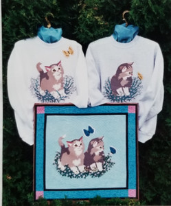 Fabric Applique and Ribbon Embroidery Pattern "Kittens - Sweet and Innocent"