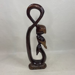 Vintage Hand Carved Wood Infinity Figure Statue of Man & Woman Kissing 18”