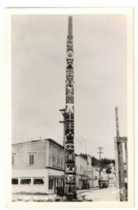 c1940 Real Photo PC: Street Scene & Totem Pole, Wrangell Alaska – Schallerers PC