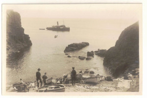 c1930 Real Photo PC: Ship Anchored at Church Cove – Lizard, Cornwall, England