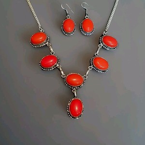 Red Coral 925 Earring And Necklace Set. Very pretty (3003)