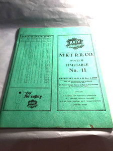 M-K-T Katy Railroad 1982 System Timetable No. 11 Vintage