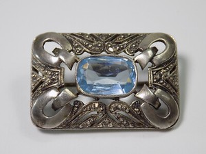 Vintage Jugendstil Charm Brosche Spinell Aquamarinfarbend Silber Floral verziert