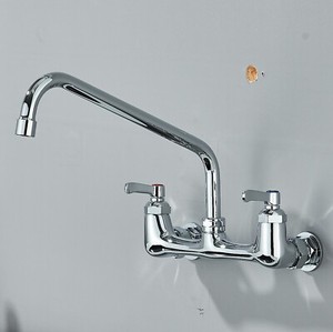 Commercial Kitchen Faucet 8" Center Wall Sink Faucet 2-Handle Mixer Swivel Spout
