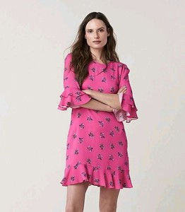 NWT DIANE von FURSTENERG RUFFLE CUFF SLEEVE DRESS pink floral size LARGE