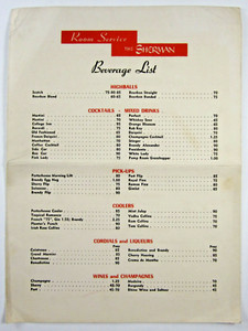 Cocktail Drink Wine Menu Sherman Hotel Room Service Chicago IL 1950-60s