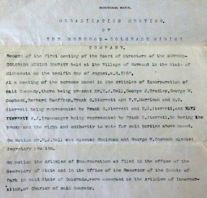 Norwood Colorado Mining Company 1st Board Meeting Minutes Incorporation 1902