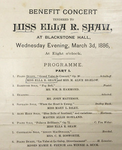 Blackstone Hall Providence RI Blind Pianist Ella R Shaw Concert Program 1886