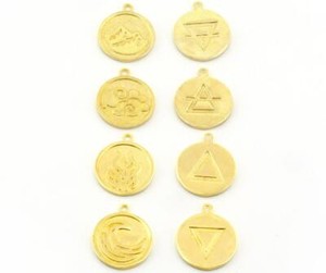 Four Elements Earth, Air, Water, Fire Symbols Charms Pendant Raw Brass 4900