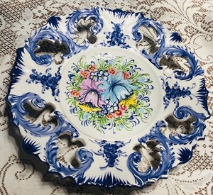 Vintage Ceramic Hand painted Plate Floral Design With cut work