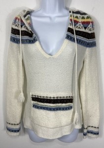 Vtg Next Era Couture V Neck Hoodie Sweater Cream Hearts Aztec Design Pocket Lg