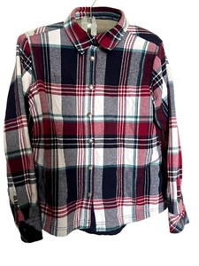Orvis Womens Medium Flannel Shirt Jacket Fleece Lined Blue Burgundy Multi Plaid