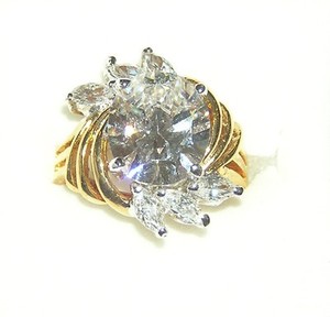 RING R37 Evening Cocktail Rhinestones 10K GP Size 7 3/4