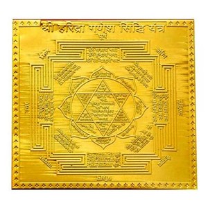 Shri Haridra Ganesh Siddhi Yantra In Pure Copper Energized 6 Inch Gold Plated