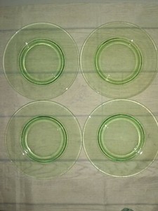 Vintage Vaseline Uranium Glass Set 4 5" Plates