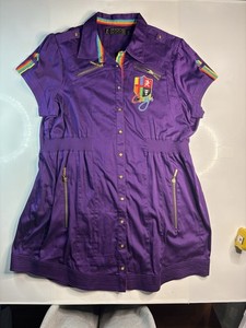 Vintage COOGI Womens 2XL Y2K Embroidered Shield Patch Zip-Up Dress Rainbow