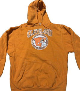 Vintage 90s Cleveland Browns Hoodie Cadre Athletic L Orange NFL Helmet Logo Rare