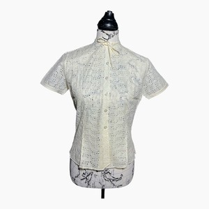 Vtg Romantic Eyelet Prairie Blouse Cottage-core Top Size XS/S Ivory Custom Made S$ 63.42Was: S$ 77.35