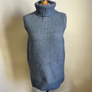 Marks And Spencer Tank Top Size Medium Blue Ribbed Roll Neck Jumper Autumn Layer