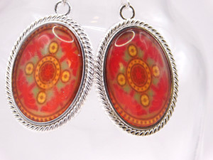Vintage Style Pierced Earrings, Glass Center, Orange 1"