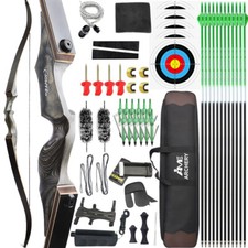 60" Recurve Bow Arrow Kit Archery 20-60lbs Bamboo Core Limbs Shoot Hunting RH LH